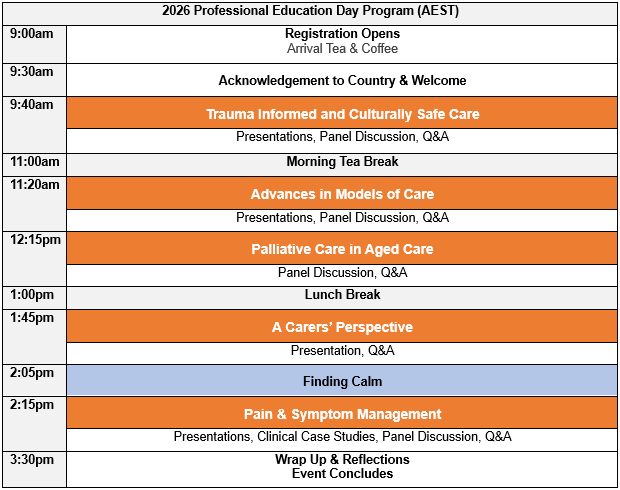 The Professional Education Day is a clinical education event for healthcare professionals from various disciplines working in palliative care.
