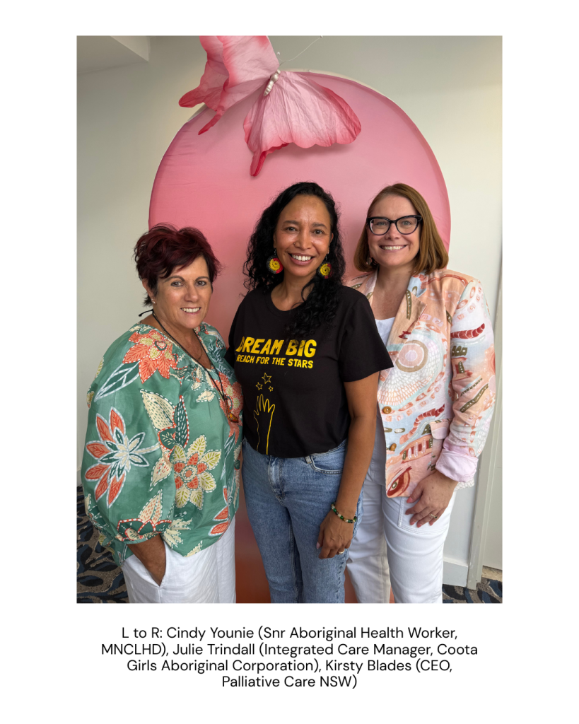 “Following that first connection with the SGOs, Palliative Care NSW has partnered with and supported the Coota Girls Aboriginal Corporation at two of their Integrated Care sessions for Stolen Generations Survivors, their families and their descendants.