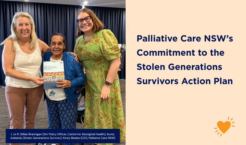 Palliative Care NSW’s learning and connection to the Stolen Generations Survivors started in May 2025 when we participated in a NSW Health led yarning and training session with the Stolen Generations Organisations (SGO). From this session, new partnerships and connections were formed with conversations and initiatives now ongoing.